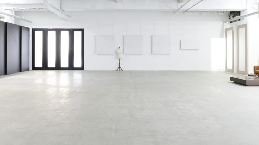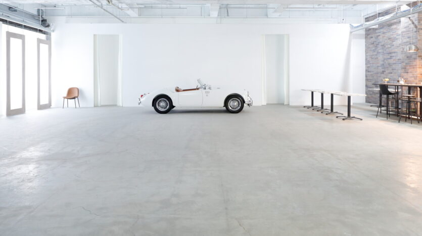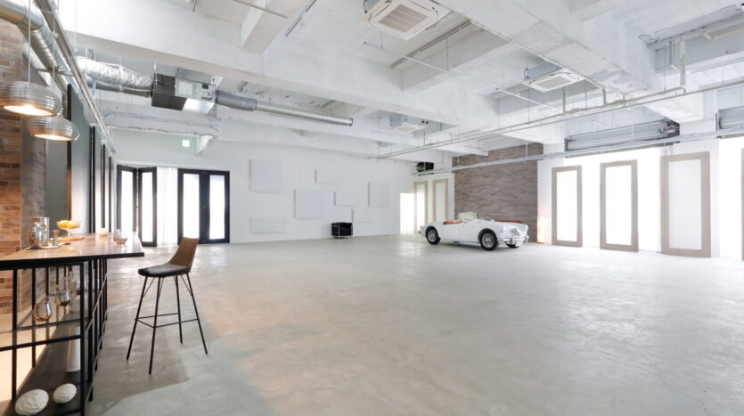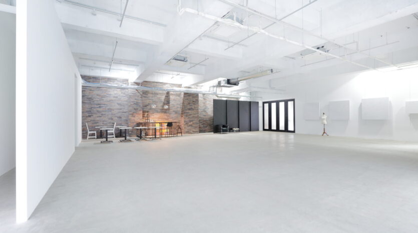 1スタジオは、モルタル床にスケルトン天井で仕上げられたインダストリアルな空間。263㎡の面積と4.5mの天井高の広々としたスタジオに十分な明るさの自然光が注ぎこみます。白壁、レンガ壁、可動式の黒壁など様々なマテリアルの壁面が撮影シチュエーションに合わせて選べ、様々なシーンを演出します。車を直接乗り入れることも可能なので、ガレージシーンのほか、バー・カウンターのシーン、ソファブースを使った対談シーンなど使い途が多様なスタジオです。