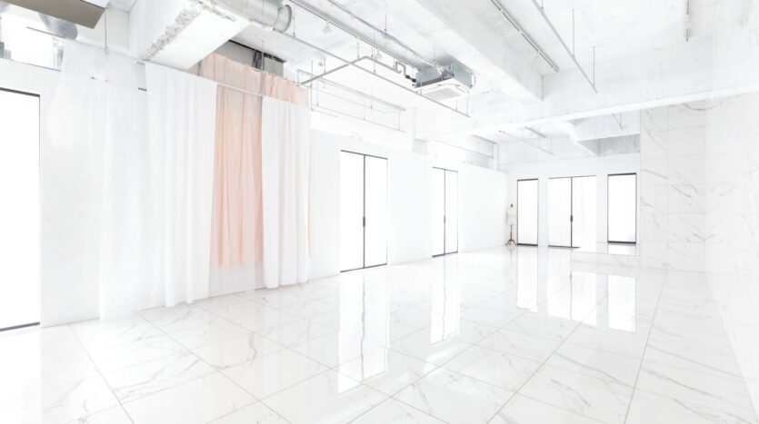 3スタジオは、床と壁に大理石が貼り巡らせられた90㎡のスペース。ジュエリーやアクセサリーの物撮り、モデルを使ったアパレル系の雑誌撮影やカタログ撮影、ブライダルのシーンなどに最適です。